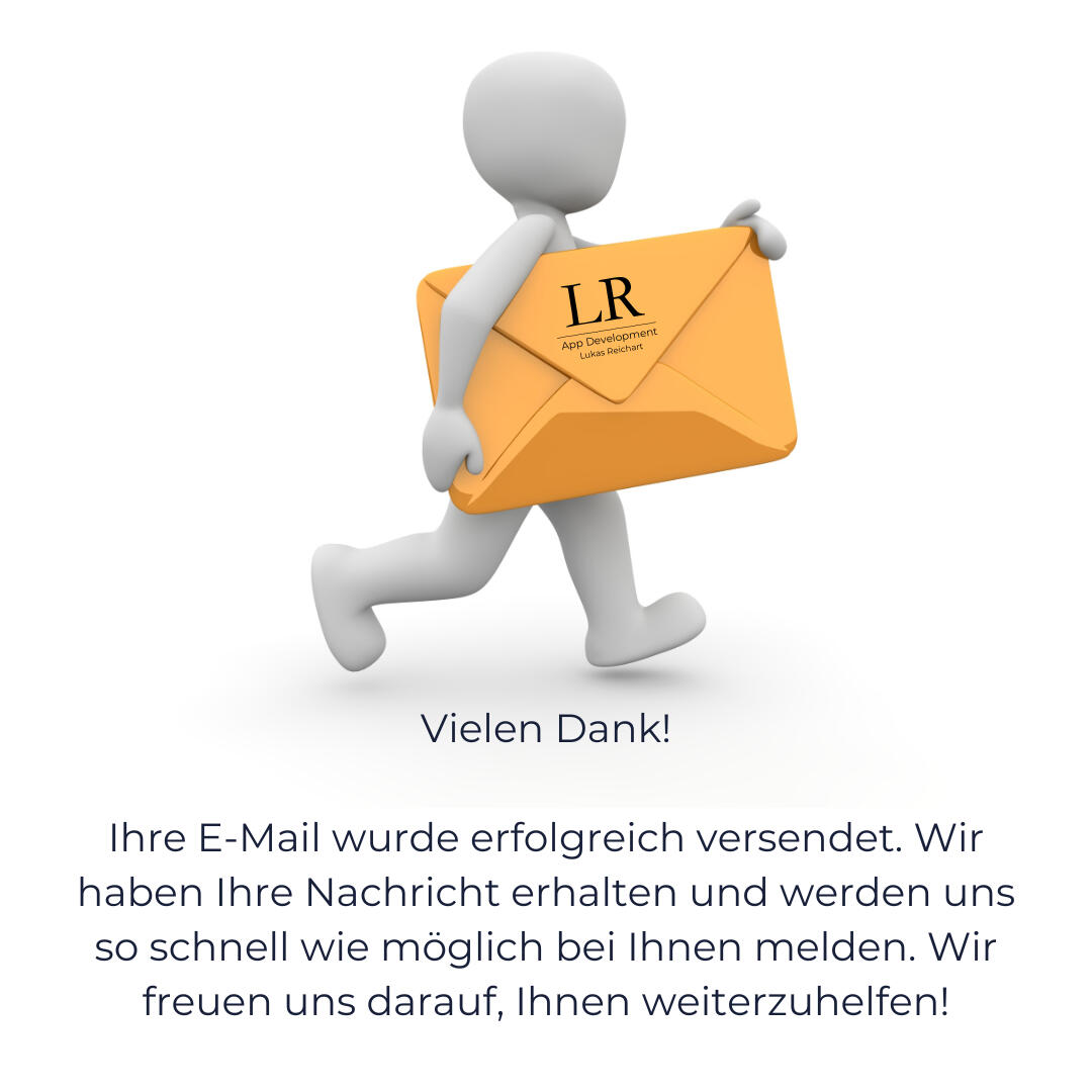 1.2 Auf der Website lukasreichart.de können Sie Anfragen zur Entwicklung von Apps stellen. Nach erfolgreicher Anfrage erhalten Sie per E-Mail alle weiteren Informationen, einschließlich eines Vertragsangebots und eines Lizenzschlüssels. Die Bezahlung erfolgt hier per Überweisung.
